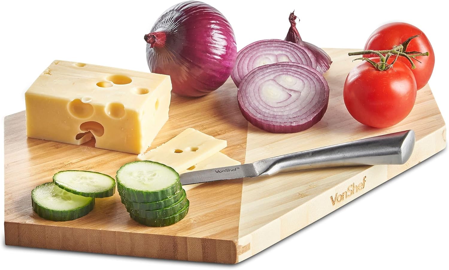 VonShef Bamboo Cheese Board – Geometric Hexagonal Serving Board