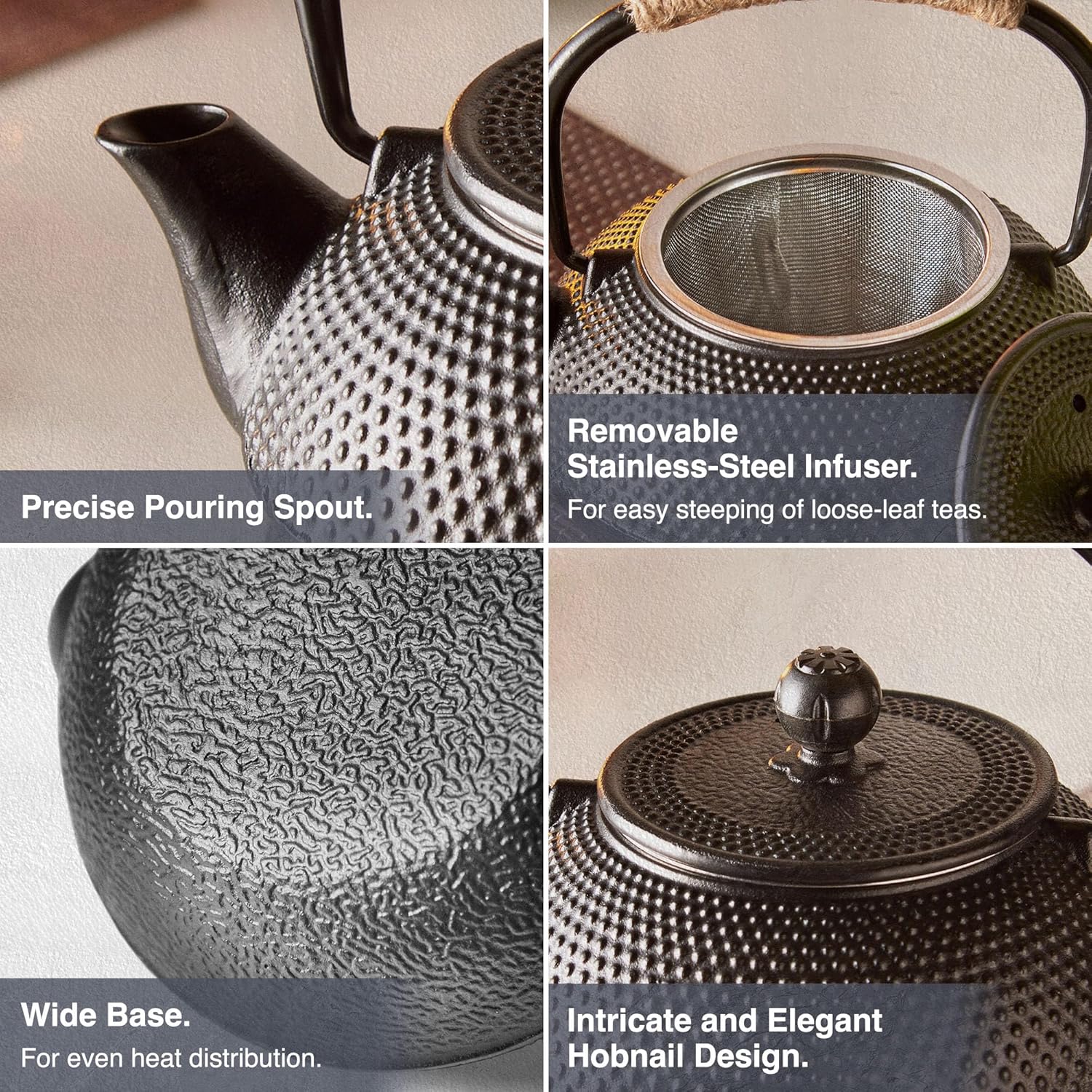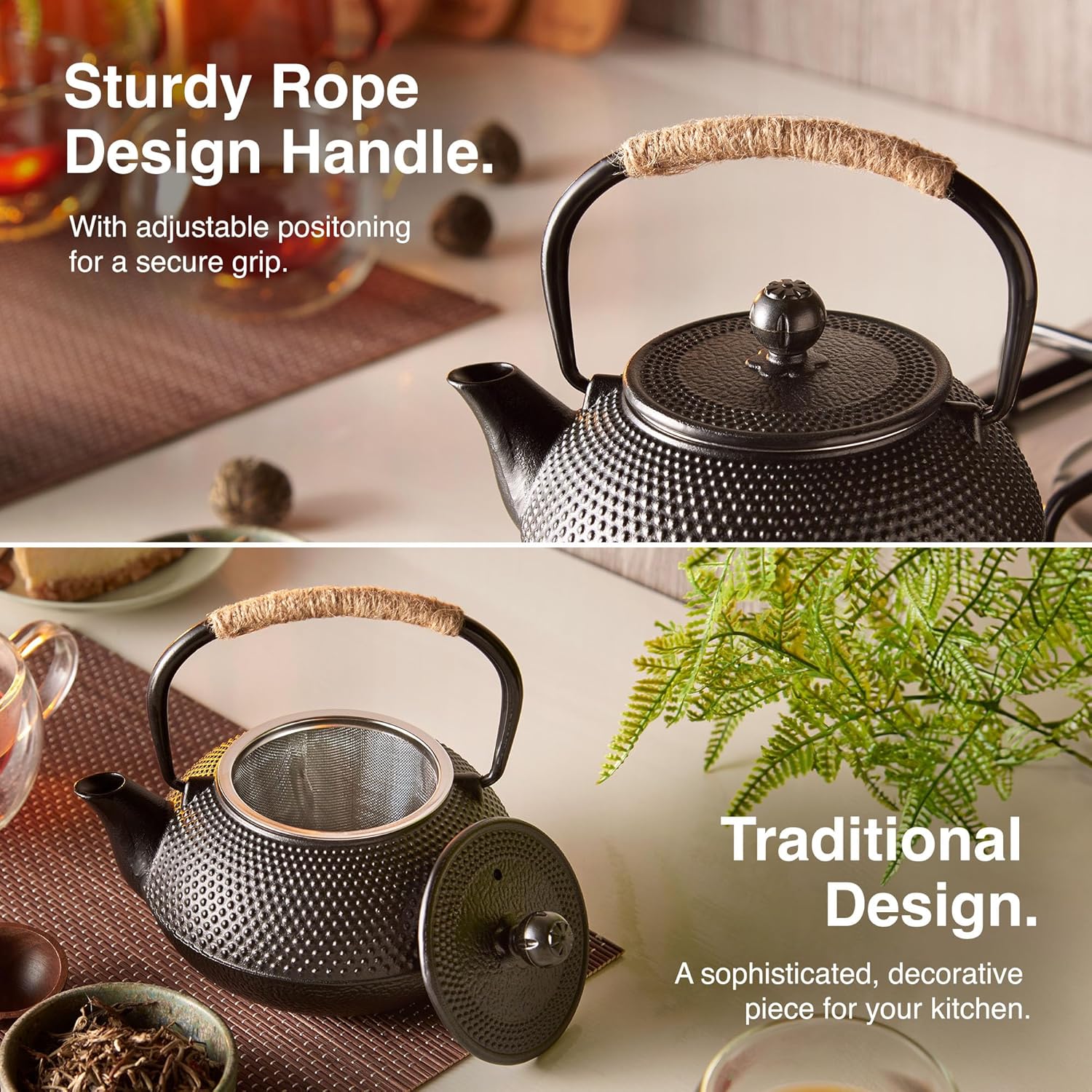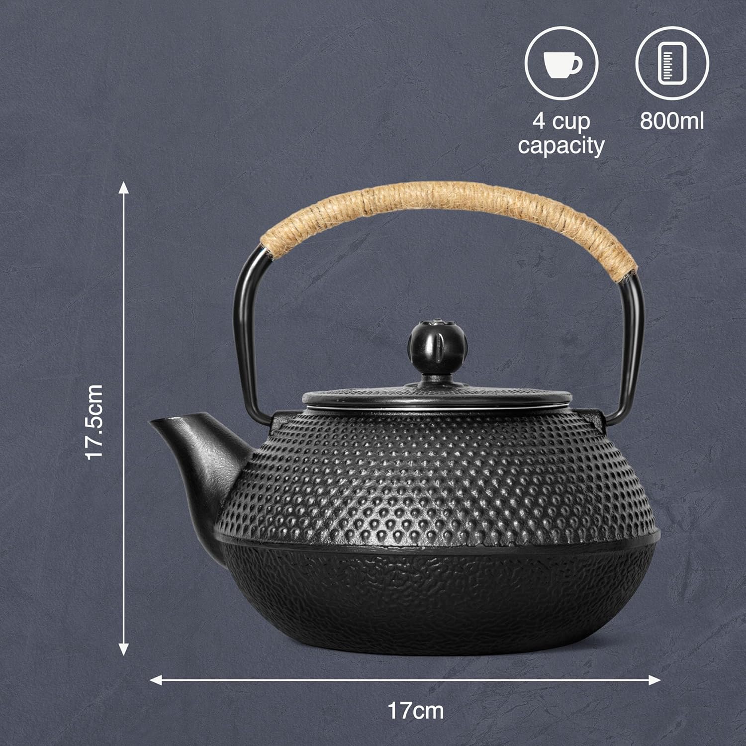 VonShef Cast Iron Teapot – 800ml Japanese Tetsubin with Mesh Infuser – Black