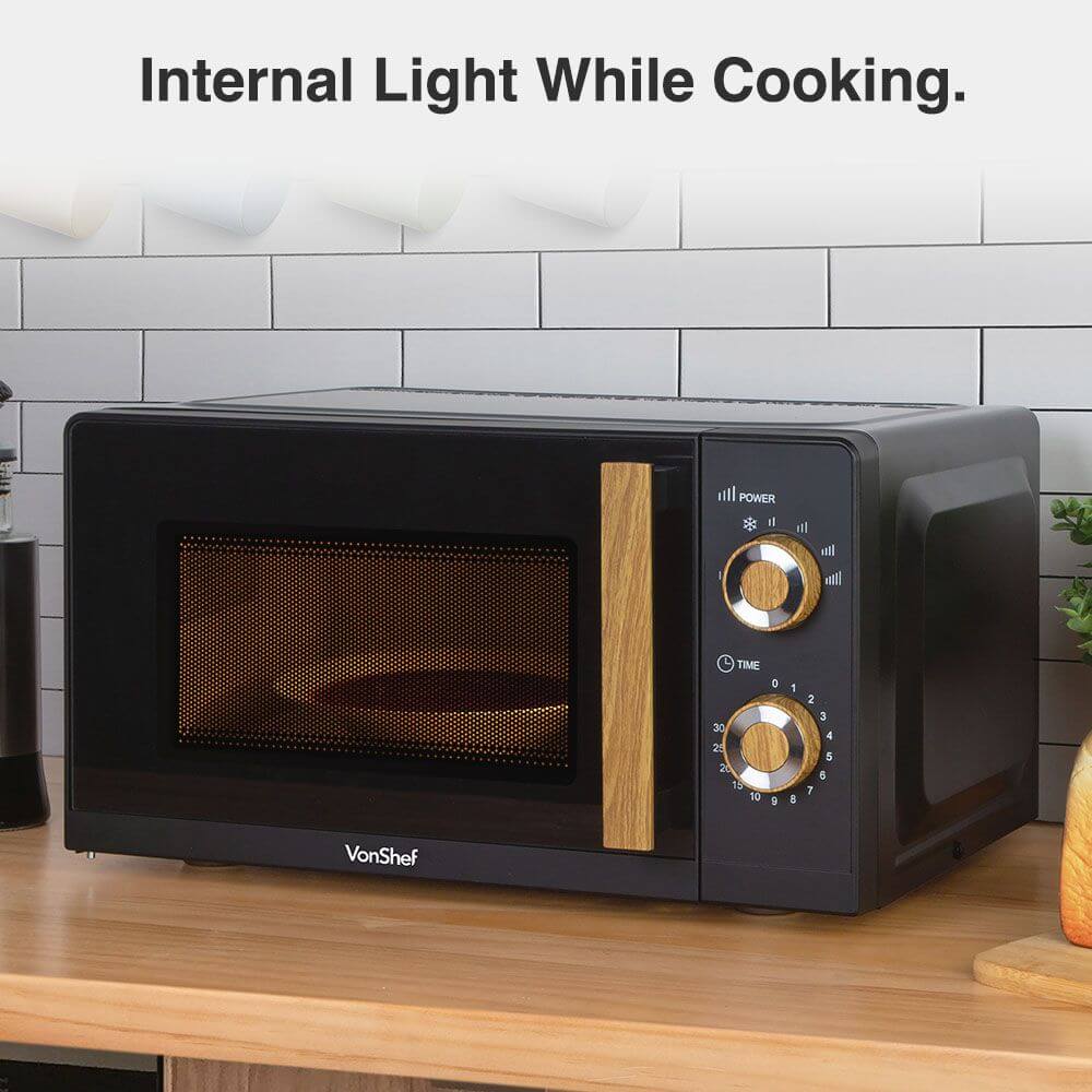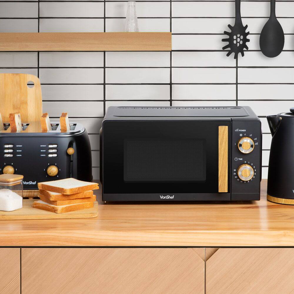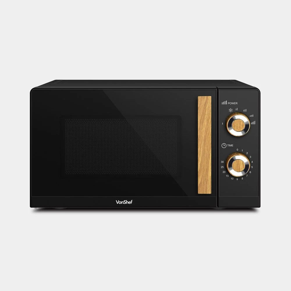 VonShef Fika Microwave – 20L Compact Microwave, 700W, Black & Wood Effect