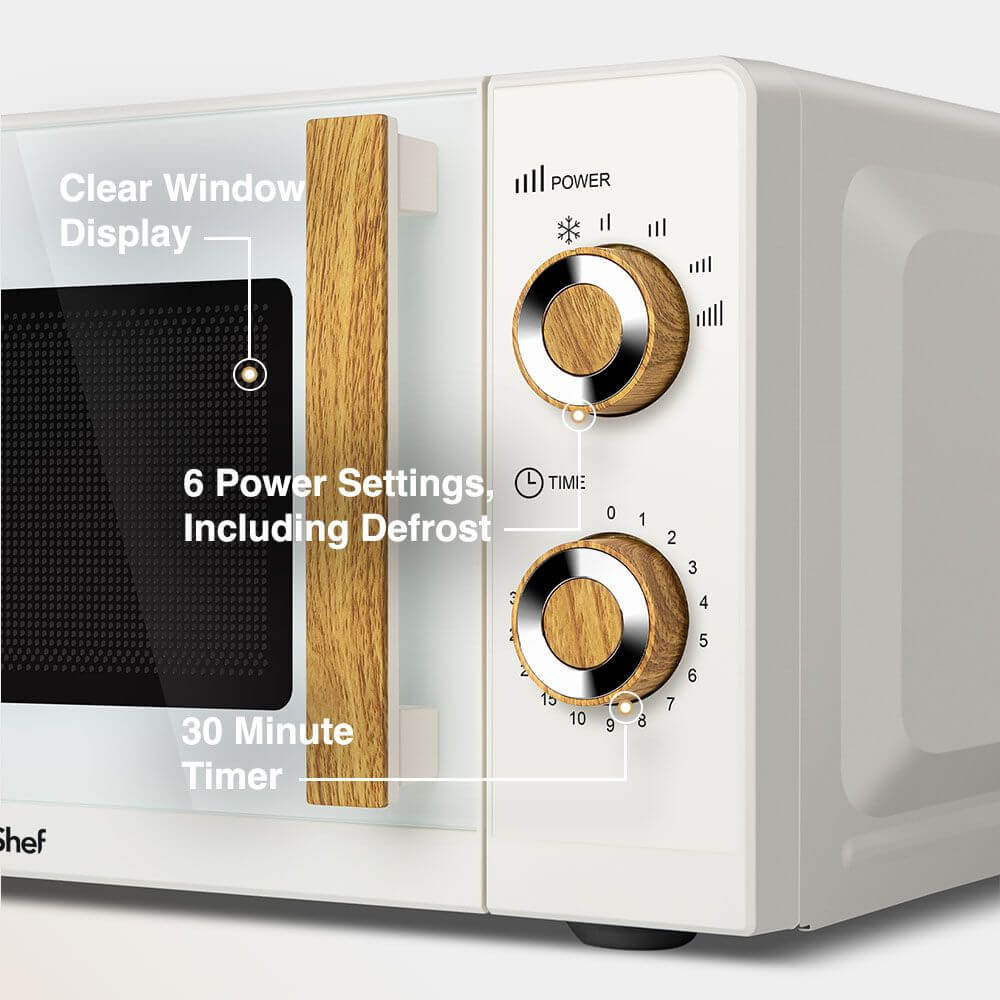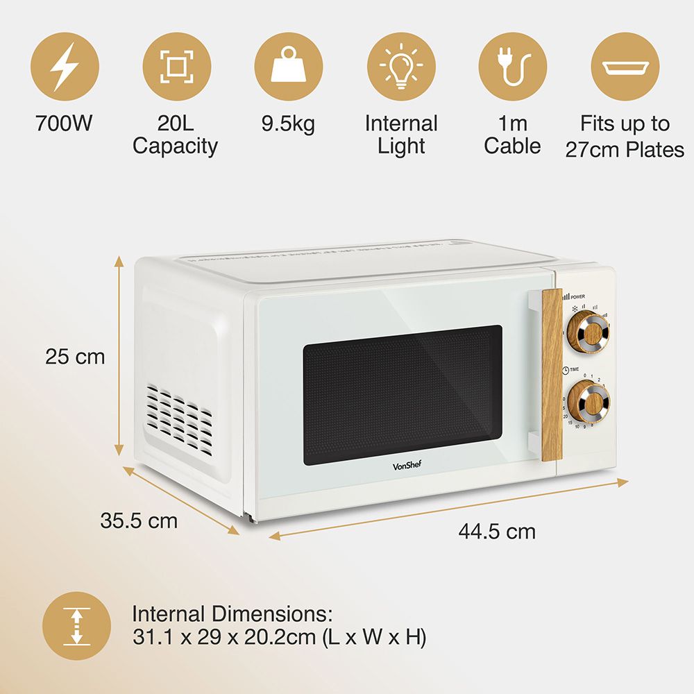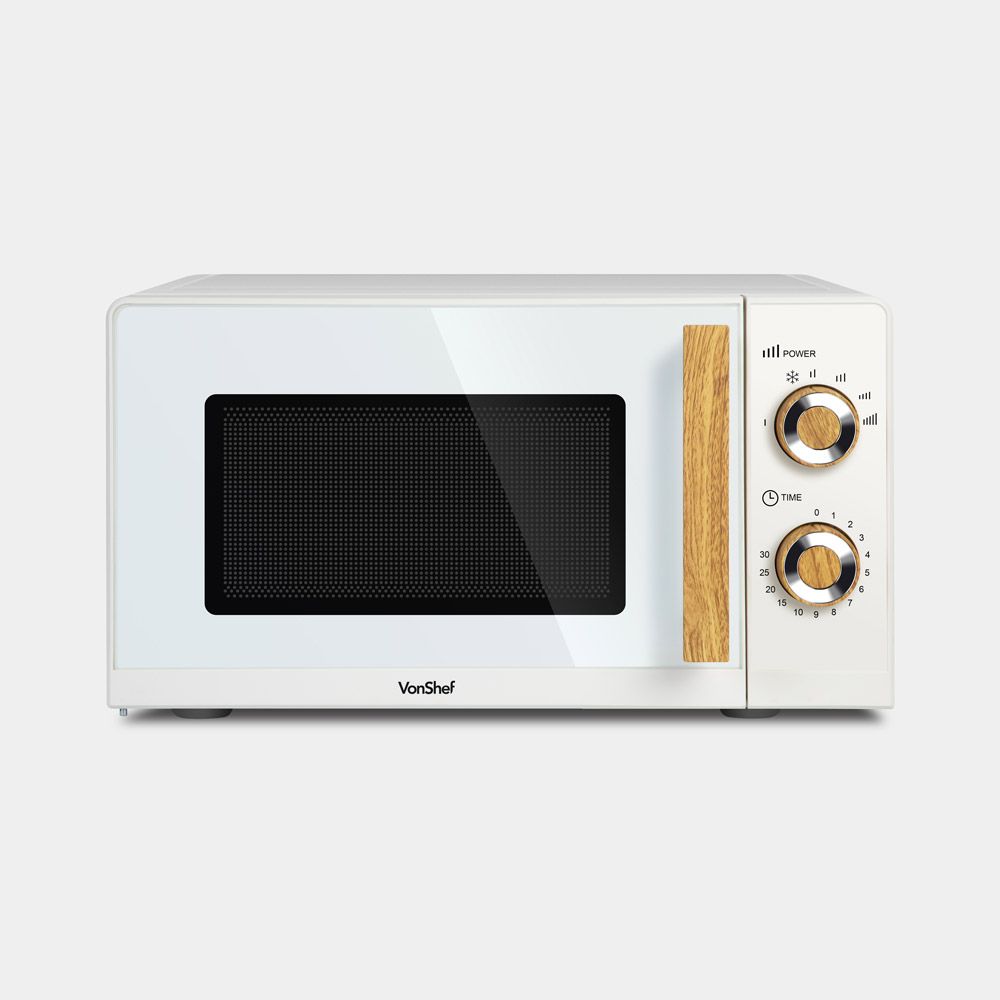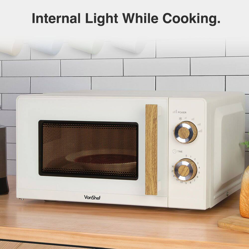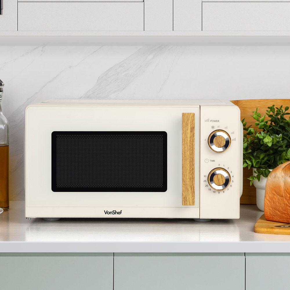 VonShef Fika Microwave – 20L Compact Microwave, 700W, Cream & Wood Effect