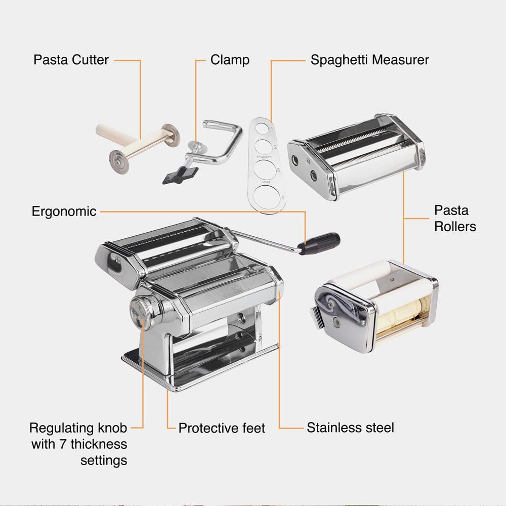 VonShef Manual Pasta Maker Machine – Stainless Steel Pasta Maker