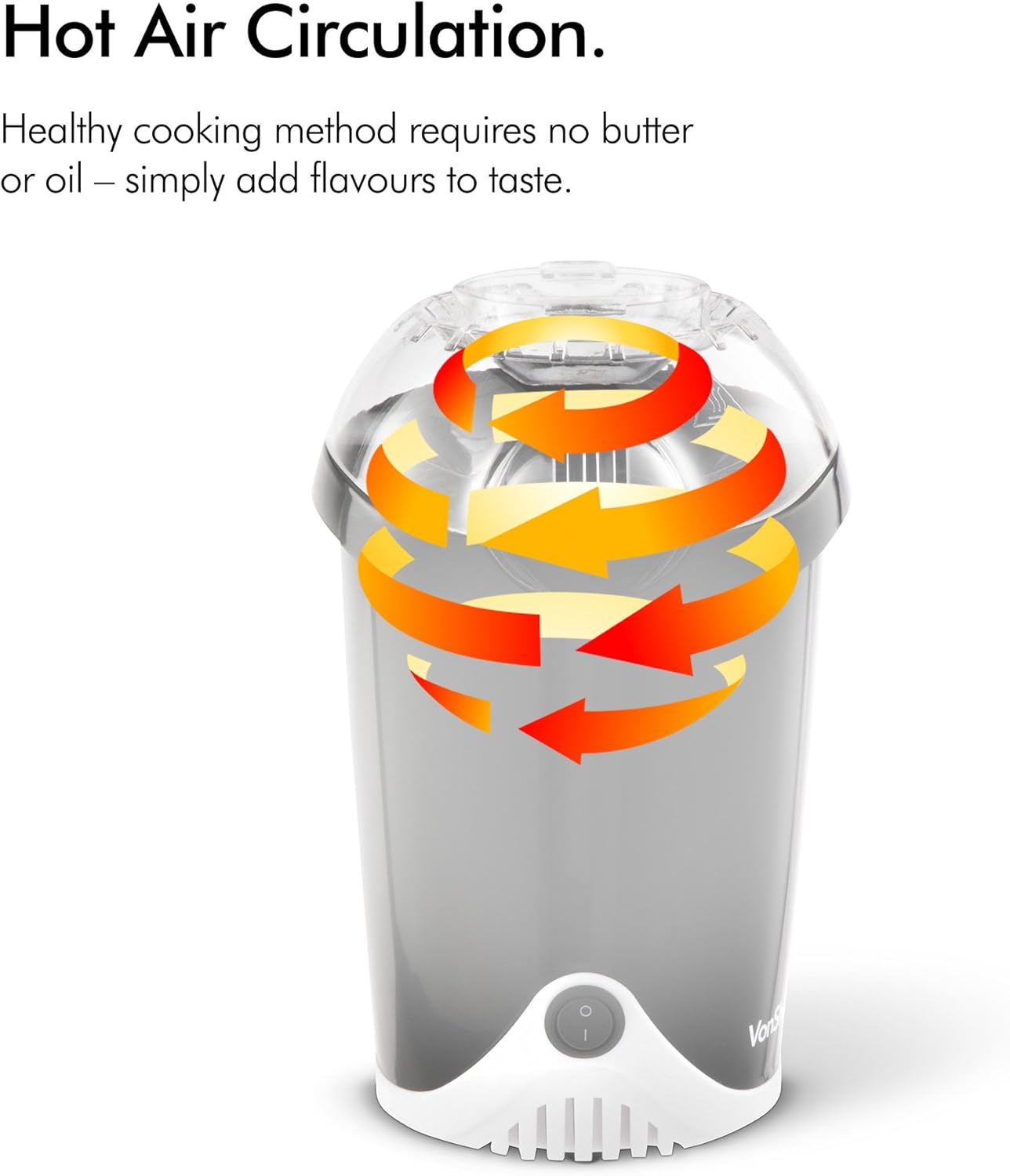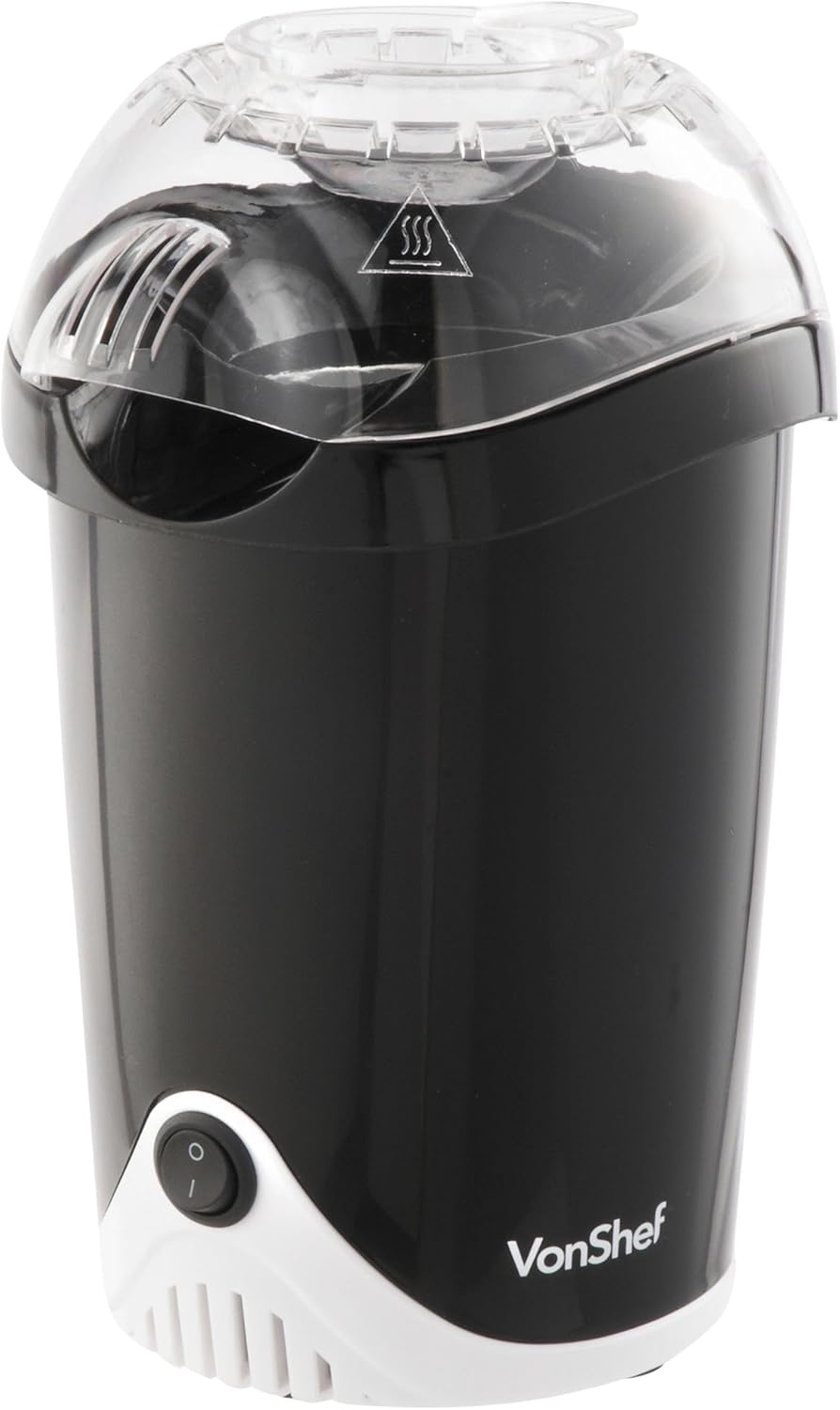VonShef Popcorn Maker – 1200W Hot Air Popcorn Machine, Oil-Free Snack Maker with One Touch Operation & 6 Retro Boxes – Black