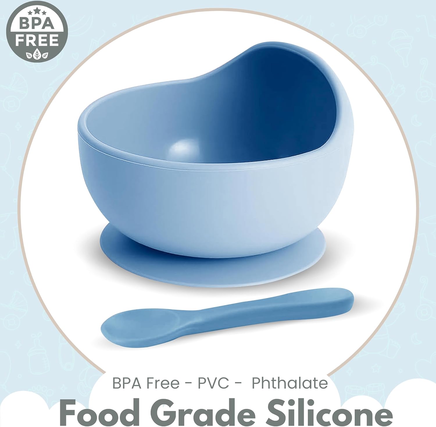 Xabono Baby Suction Plate & Spoon Set – Light Blue