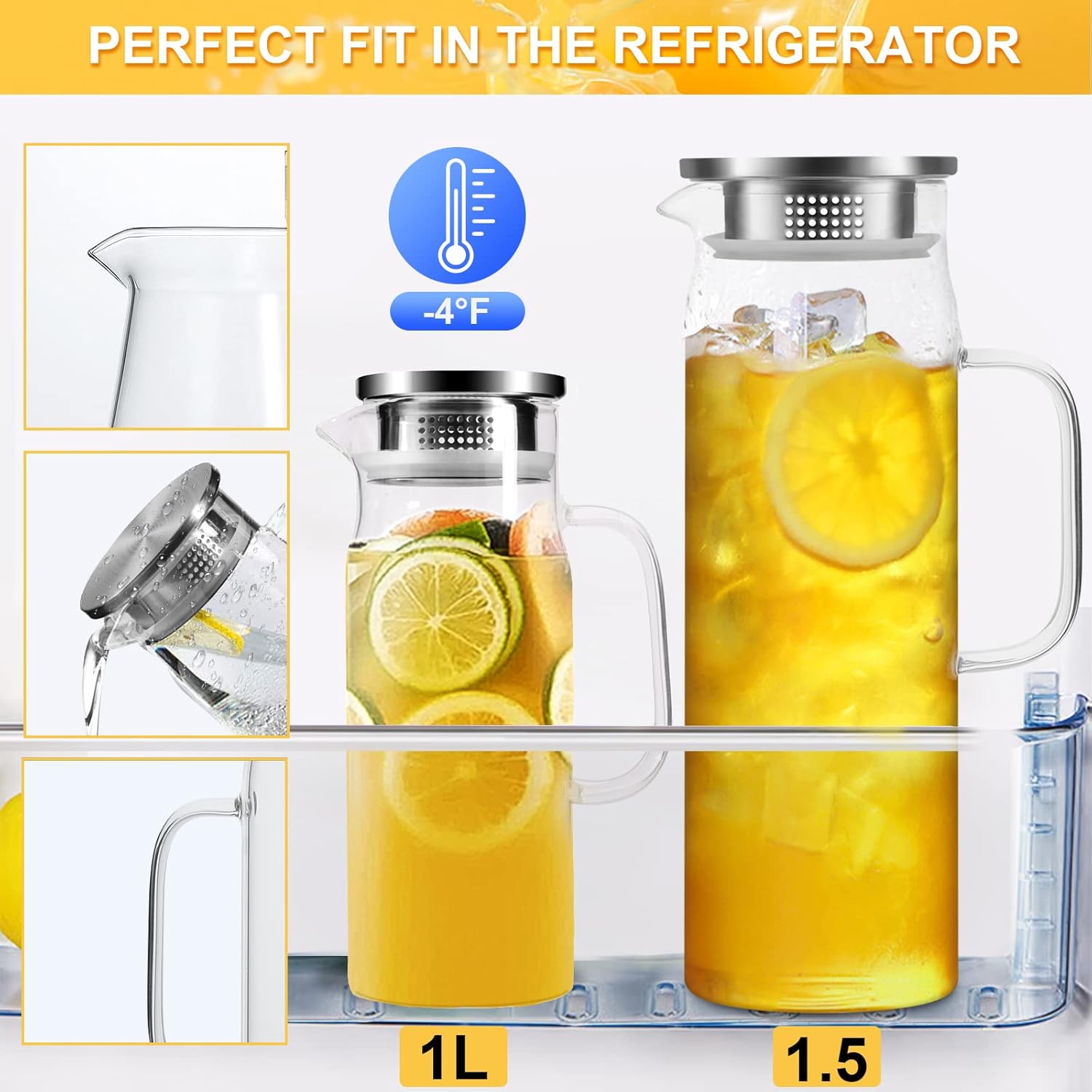 Yirilan 1.5L Borosilicate Glass Jug with Stainless Steel Lid