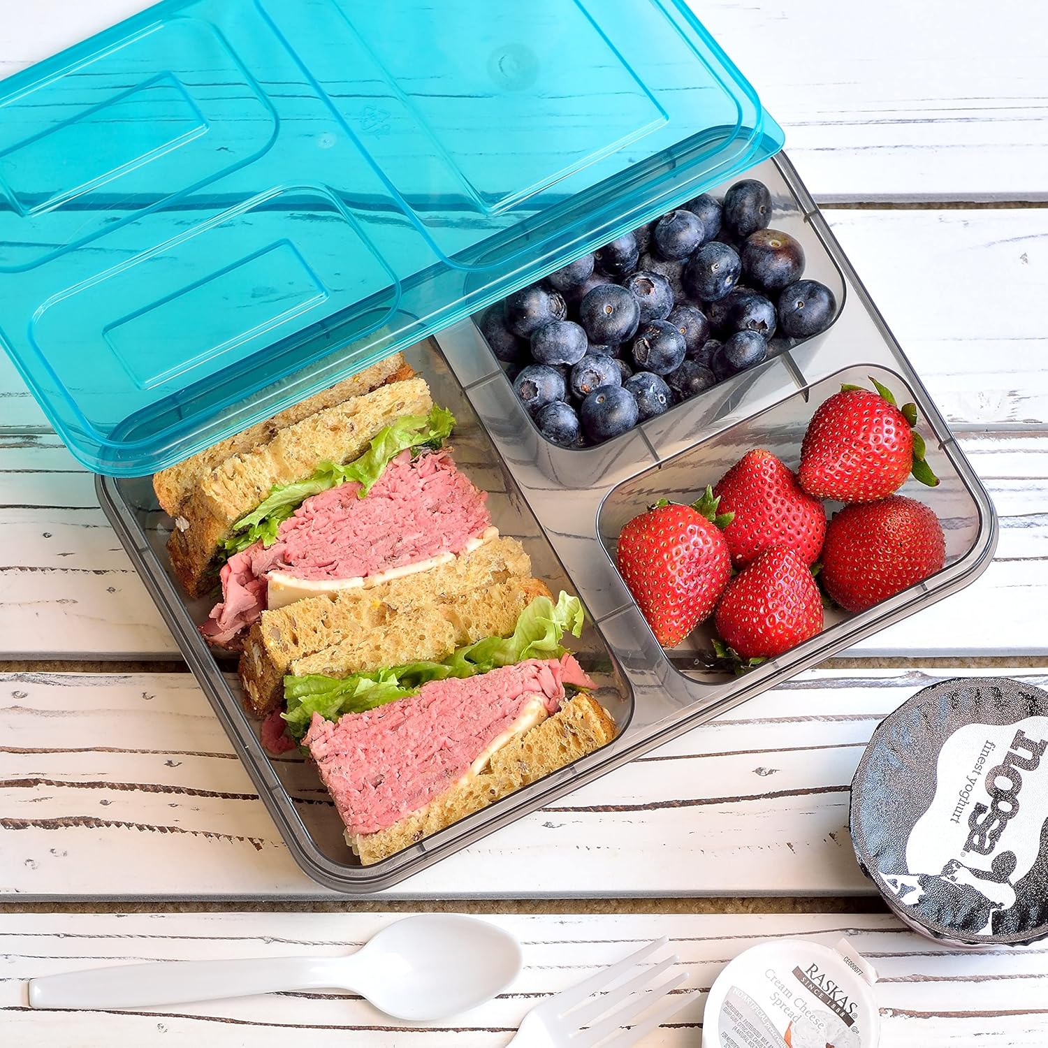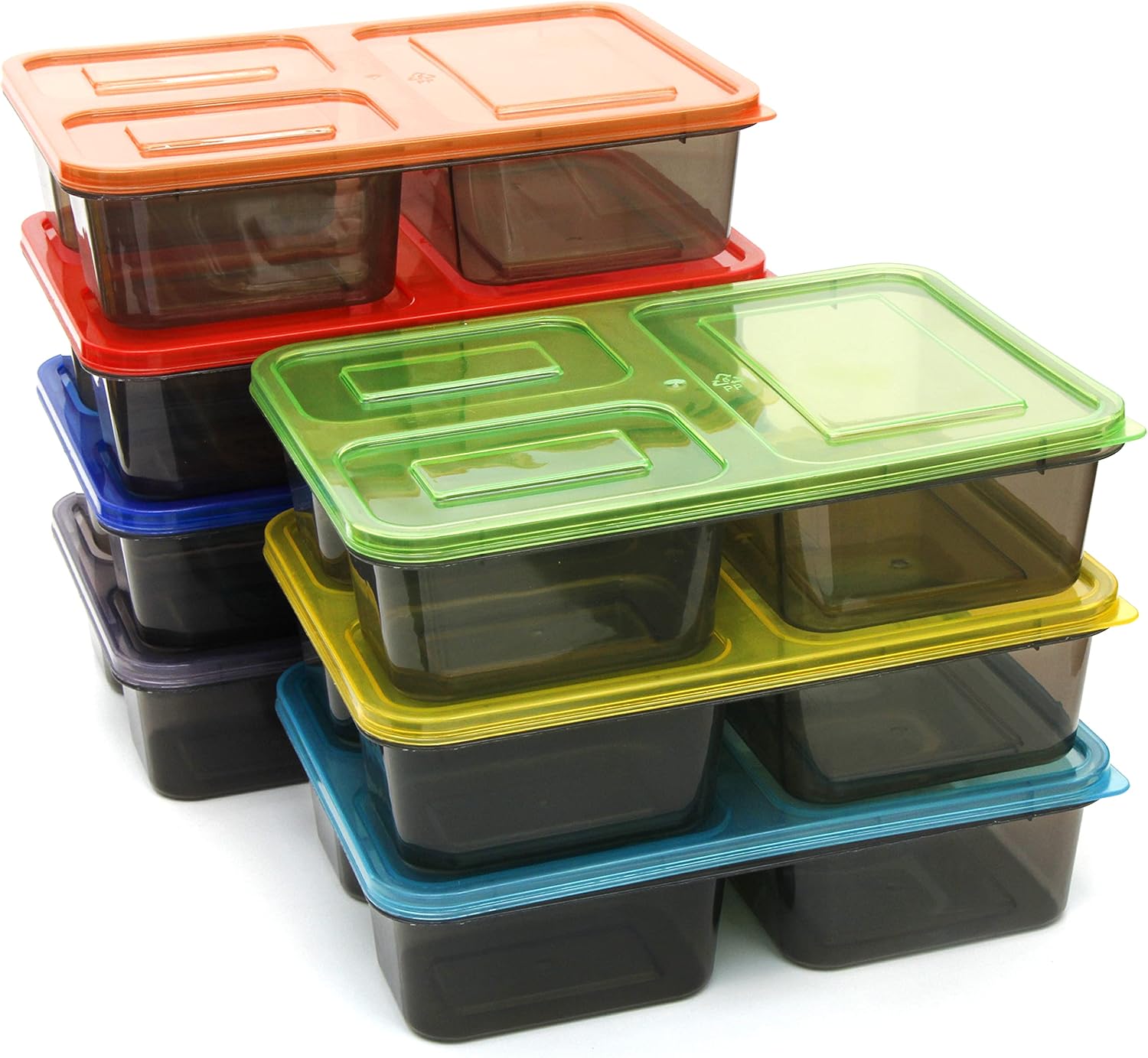 Youngever 7 Sets Bento Lunch Box – Reusable 3-Compartment Meal Prep Containers